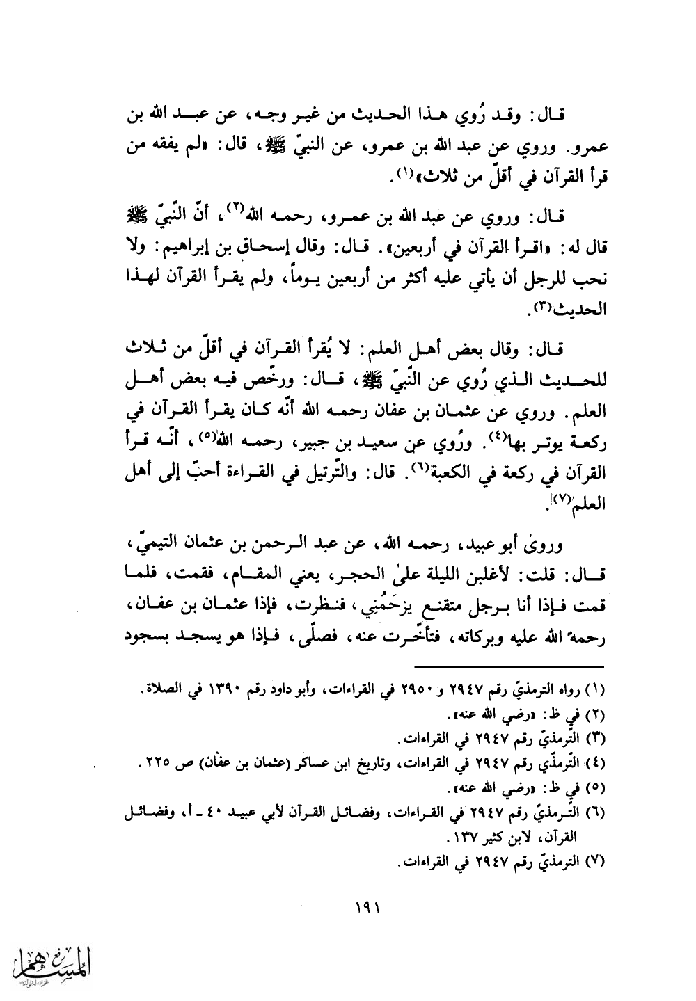 "لم يفقه من قرأ القرآن في أقل من ثلاث ".