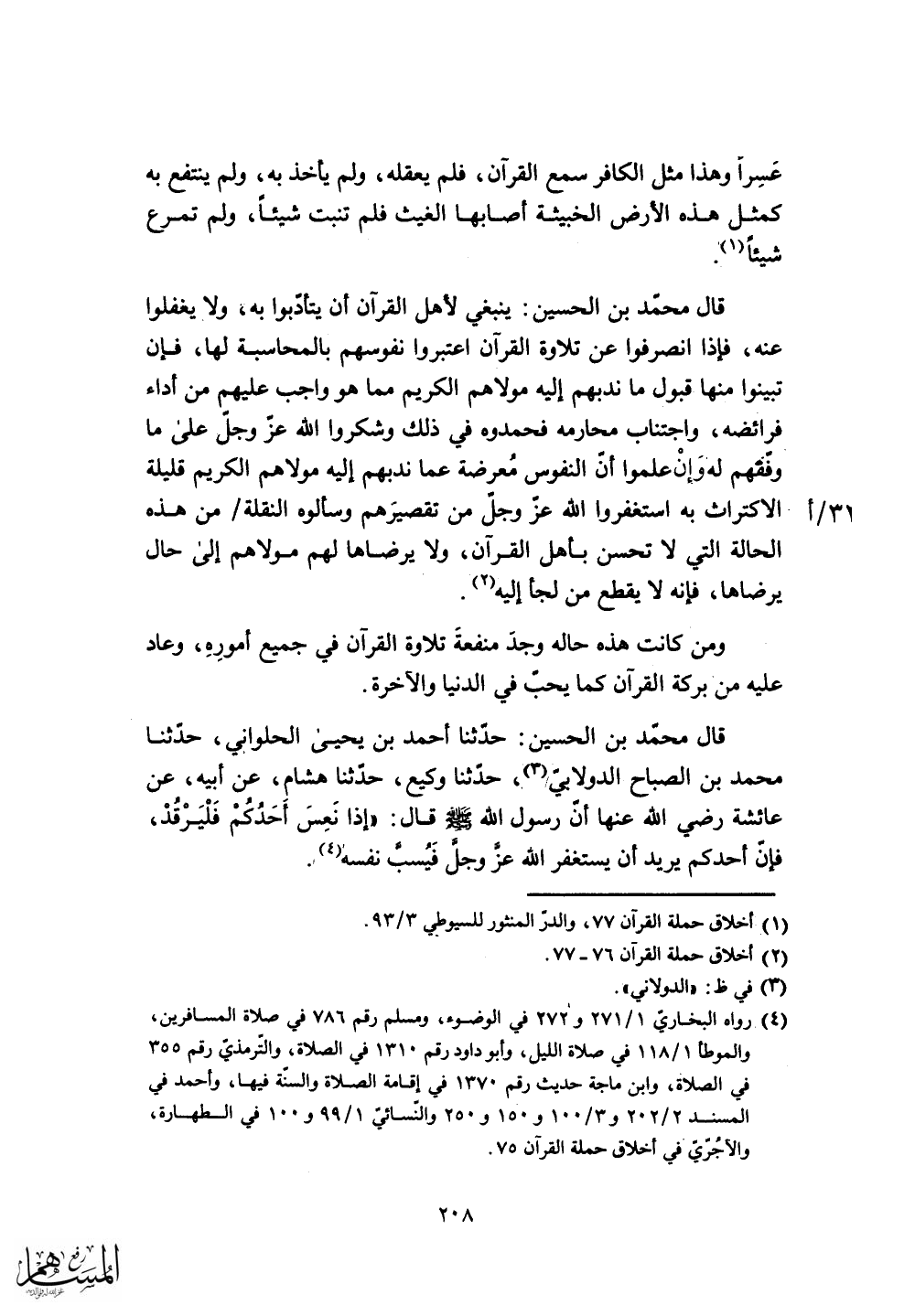 قال محمد بن الحسين: ينبغي لأهل القرآن أن يتأدبوا به، ولا يغفلوا