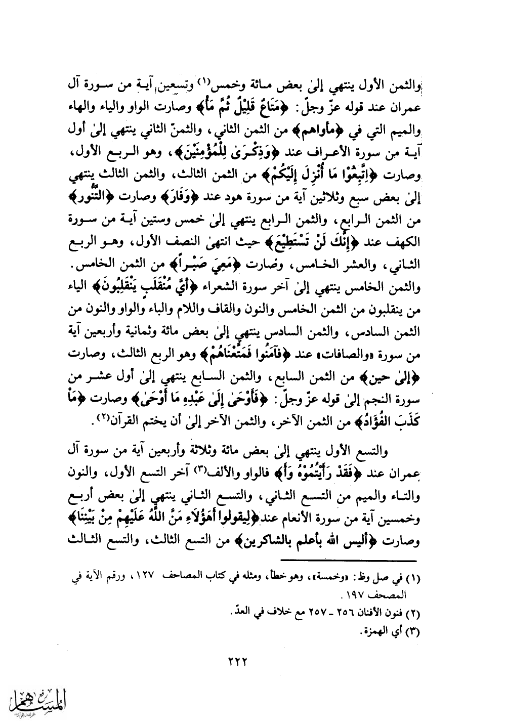 عمران عند قوله عز وجل: (مَتَاعٌ قَلِيلٌ ثُمَّ مَأْوَاهُمْ) وصارت الواو والياء والهاء والميم التي في (مَأْوَاهُمْ) من الثمن الثاني، والثمن الثاني ينتهي إلى أول