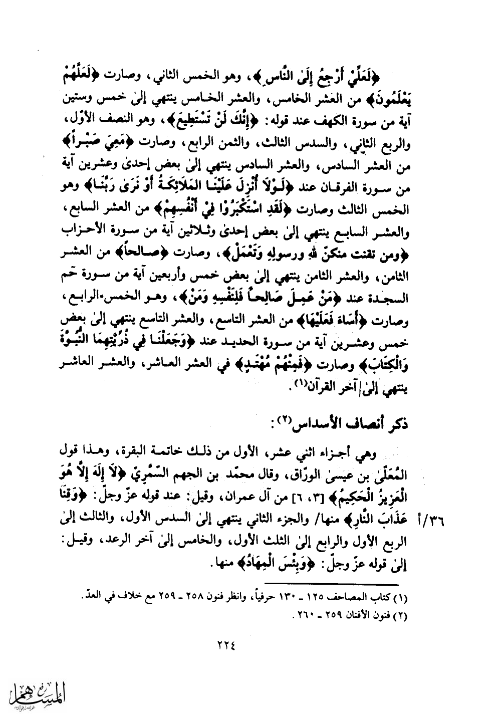 منها والجزء الثاني ينتهي إلى السدس الأول، والثالث إلى