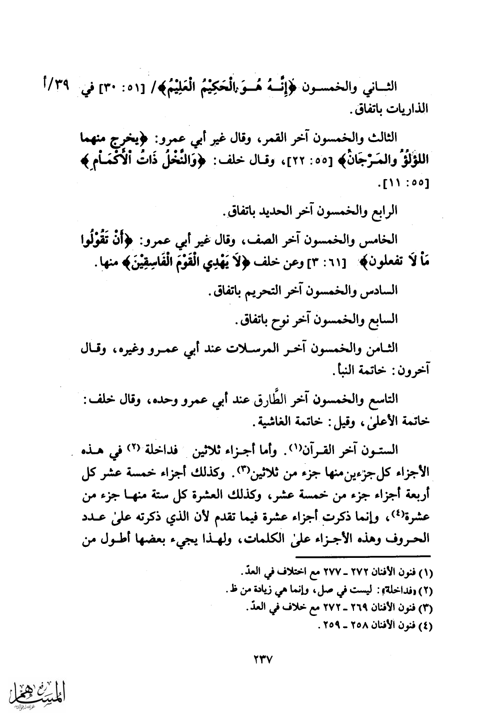 التاسع والخمسون آخر الطارق عند أبي عمرو وحده.