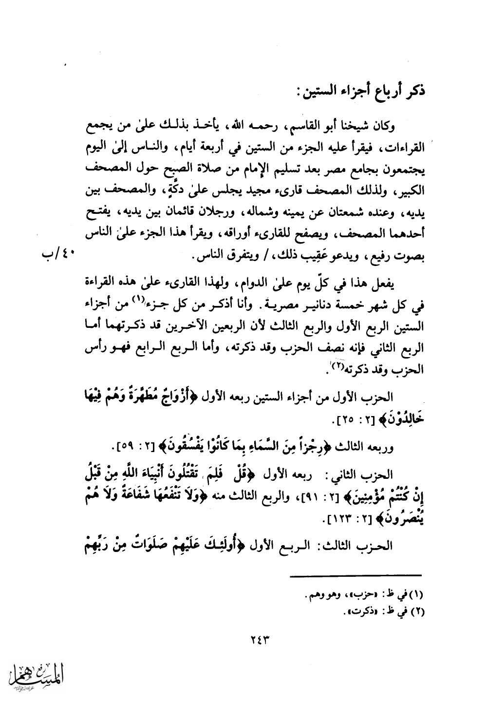 الحزب الأول من أجزاء الستين ربعه الأول (أَزْوَاجٌ مُطَهَّرَةٌ وَهُمْ فِيهَا خَالِدُونَ (25) .