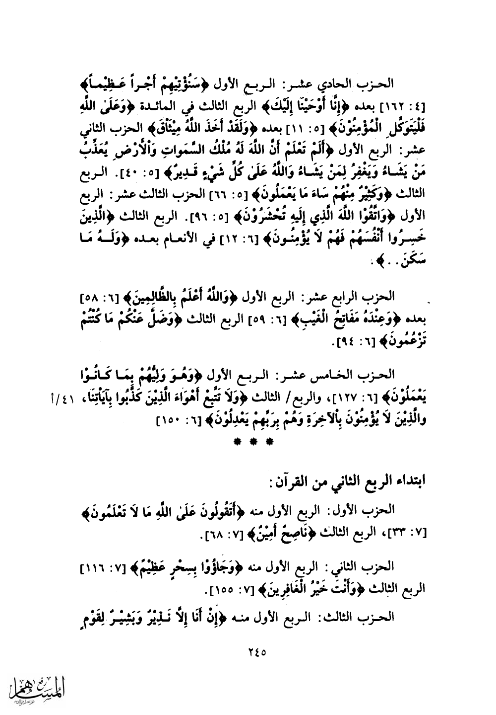 ابتداء الربع الثاني من القرآن: