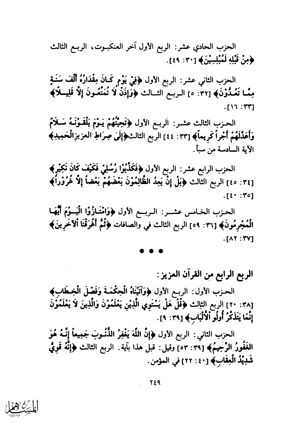 الربع الثالث (قُلْ هَلْ يَسْتَوِي الَّذِينَ يَعْلَمُونَ وَالَّذِينَ لَا يَعْلَمُونَ إِنَّمَا يَتَذَكَّرُ أُولُو الْأَلْبَابِ (9) .