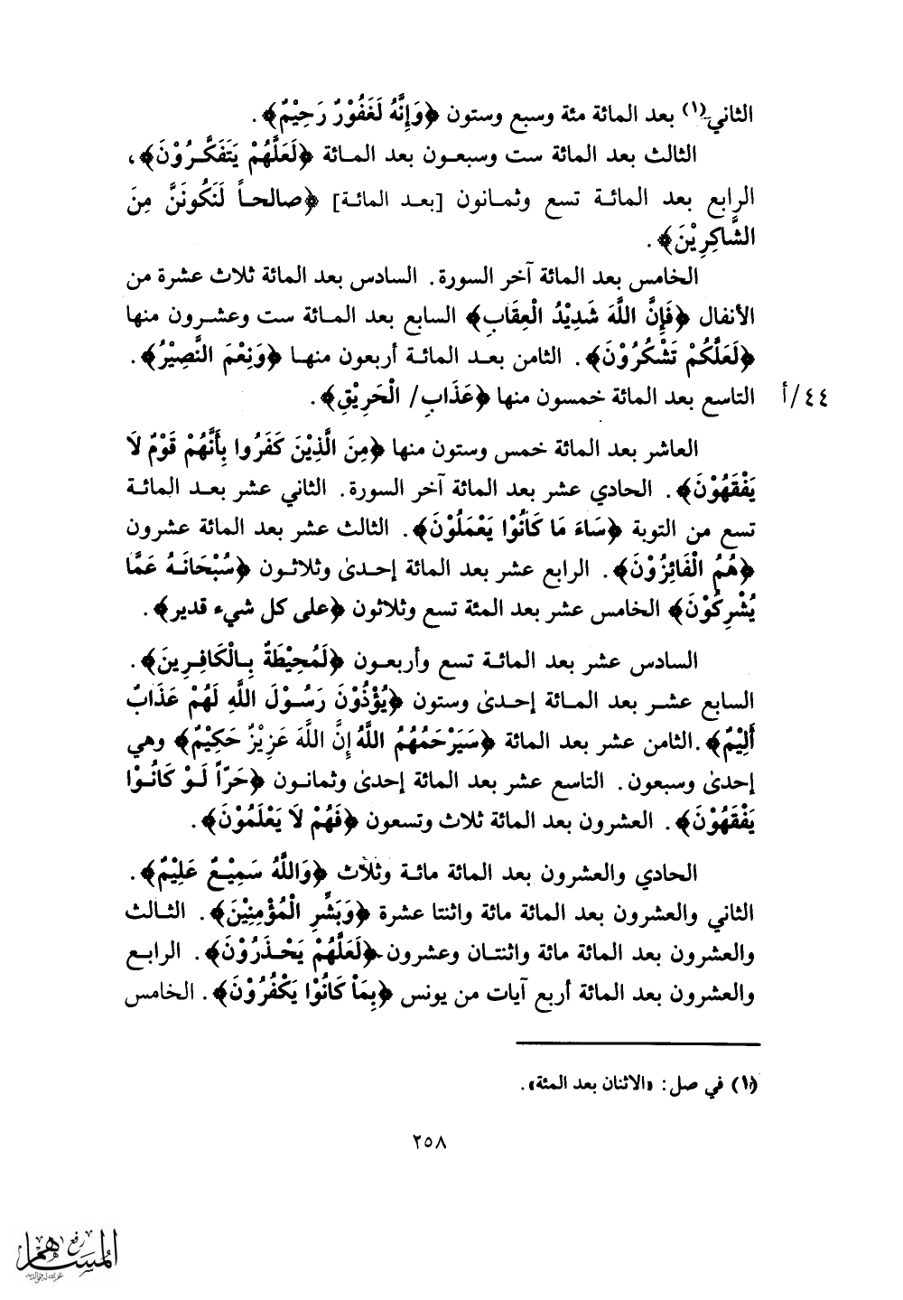 الثامن بعَد المائة أربعون منها (وَنِعْمَ النصِيْرُ) .