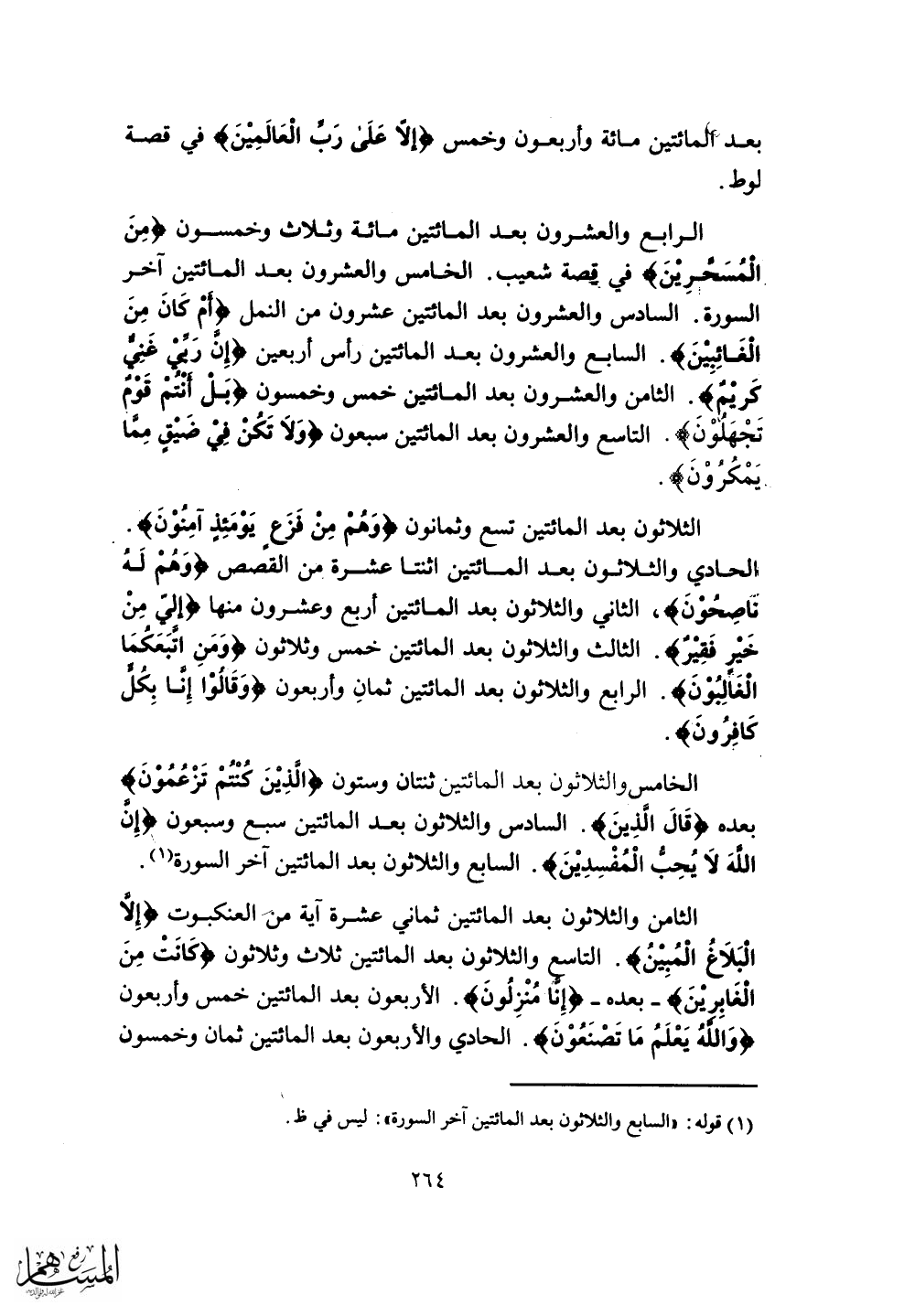 السادس والعشرون بعد المائتين عشرون من النمل (أَمْ كَانَ مِنَ الْغَائِبِينَ (20) . السابع والعشرون بعد المائتين رأس أربعين (فَإِنَّ رَبِّي غَنِيٌّ كَرِيمٌ (40) .