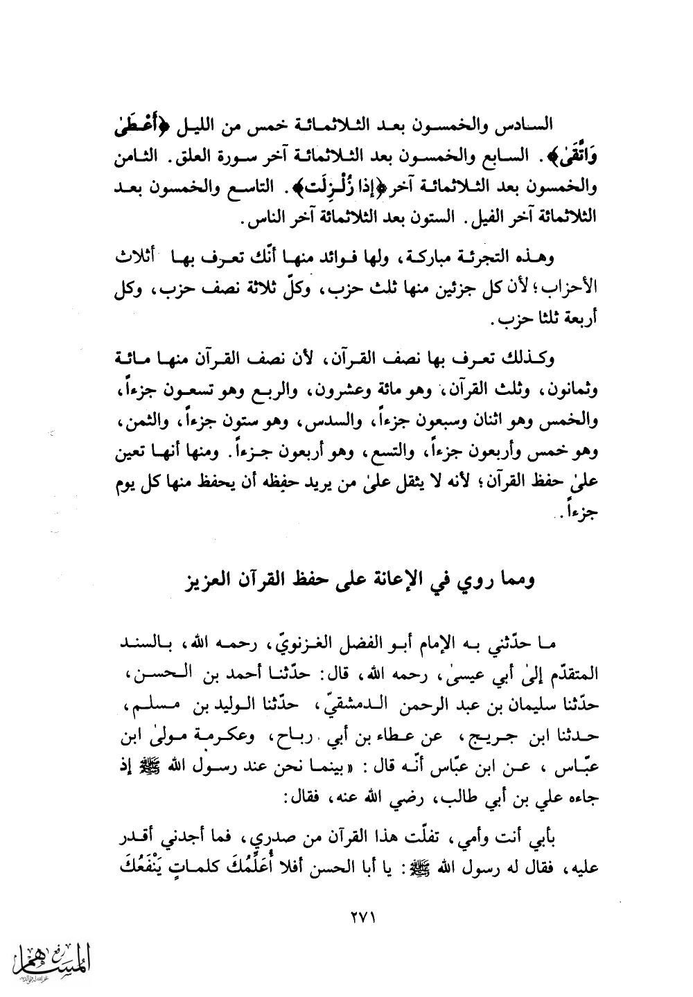 ومما روي في الإعانة على حفظ القرآن العزيز