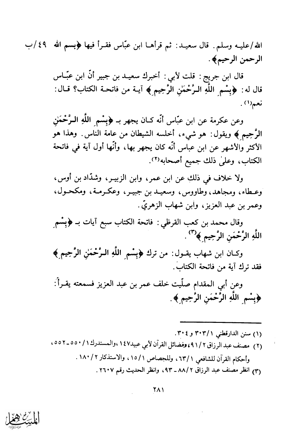 وعن عكرمة عن ابن عباس أنّه كان يجهر ب (بِسْمِ اللَّهِ الرَّحْمَنِ الرَّحِيمِ) ويقول: هو شيء، أخلسه الشيطان من عامة الناس.