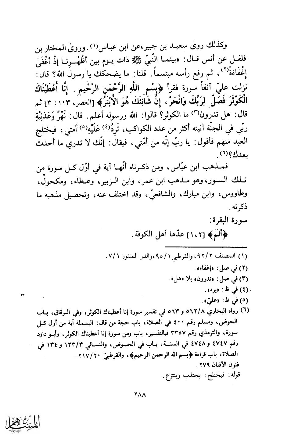 ثم قال: هل تدرون ما الكوثر؟