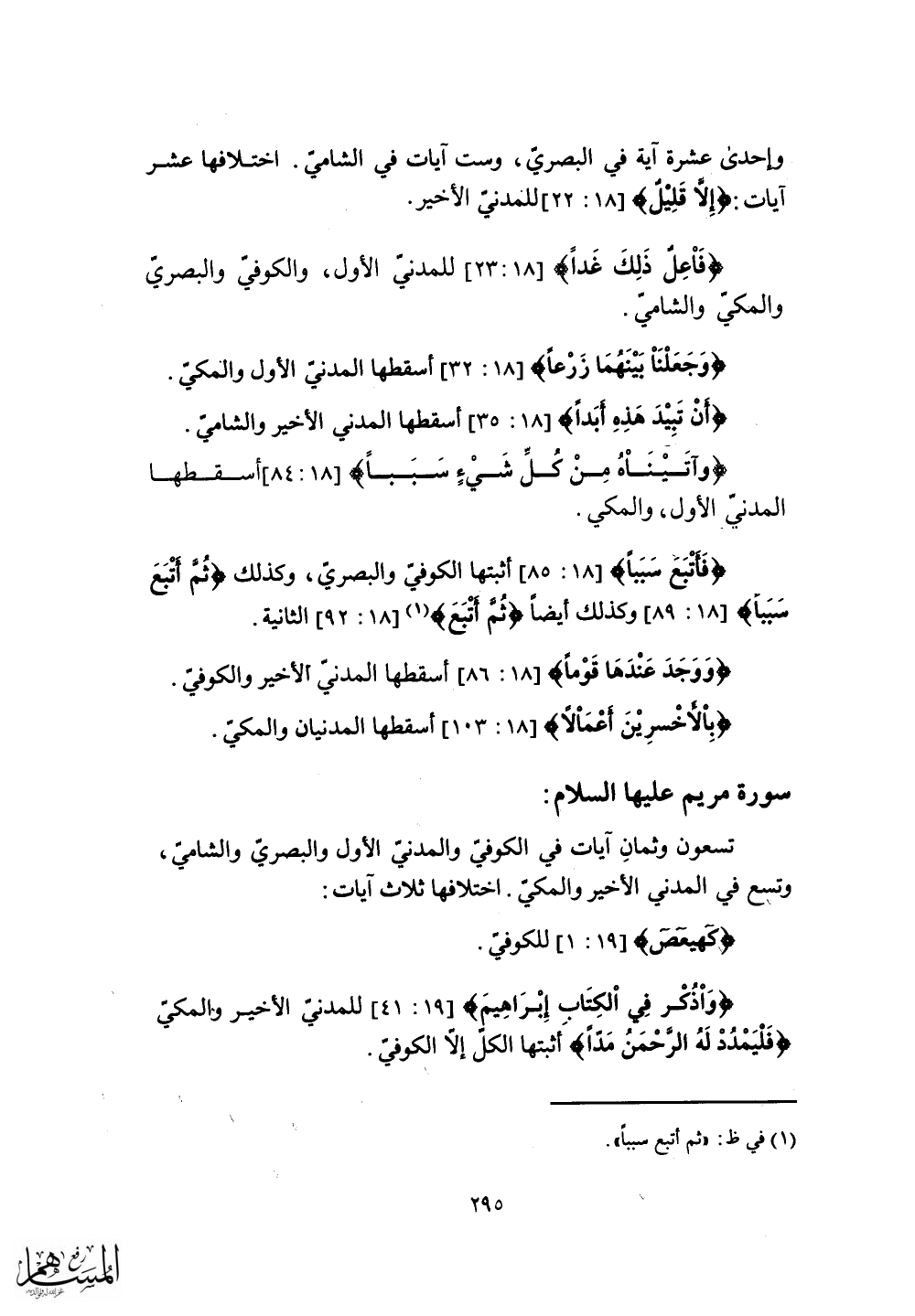 (فَآتْبَعَ سَبَباً) أثبتها الكوفي والبصري، وكذلك (ثُمَّ أتْبَعَ