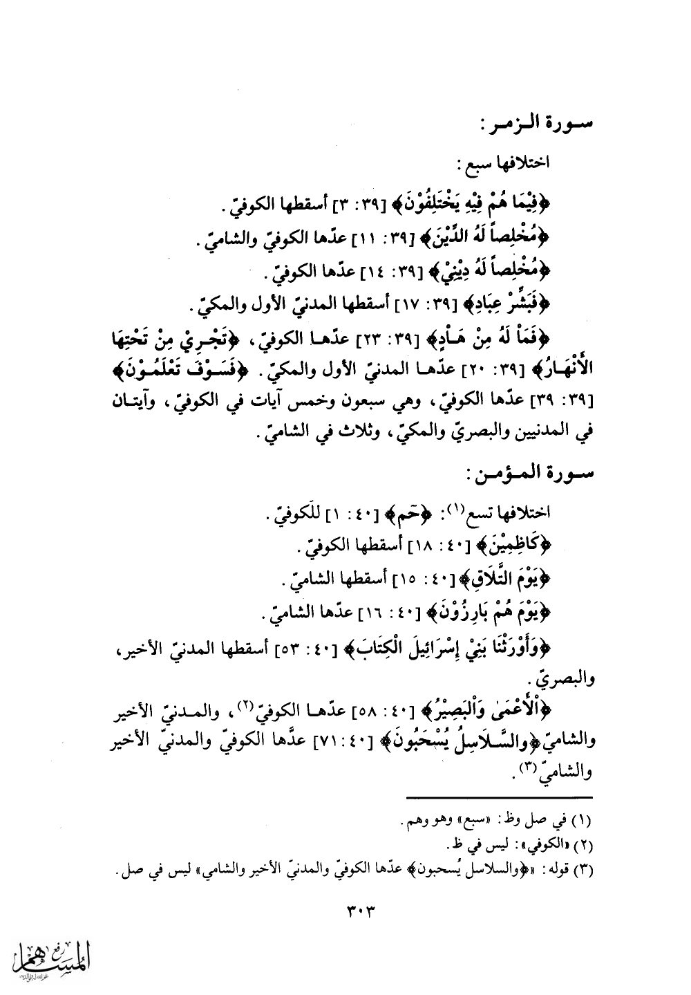 والشامى (وَالسَّلَاسِلُ يُسْحَبُونَ) عدَّها الكوفي والمدنيّ الأخير والشاميّ.