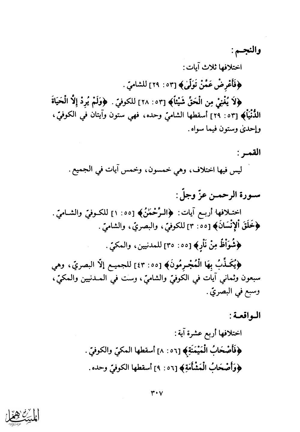اختلافها أربع آيات: (الرَّحْمَنُ) للكوفي والشامي.