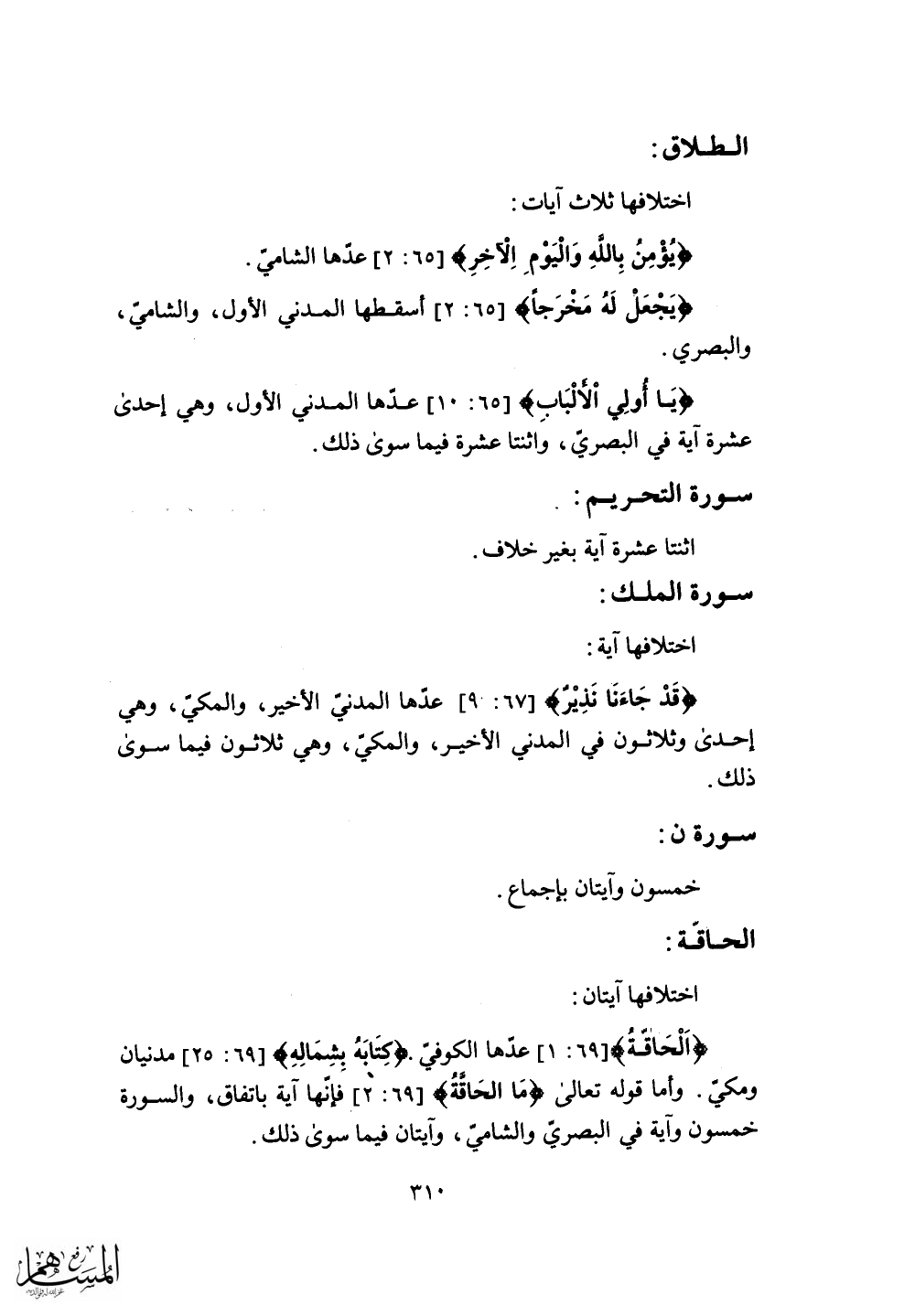 وهي إحدى وثلاثون في المدني الأخير، والمكي، وهي ثلاثون فيما سوى