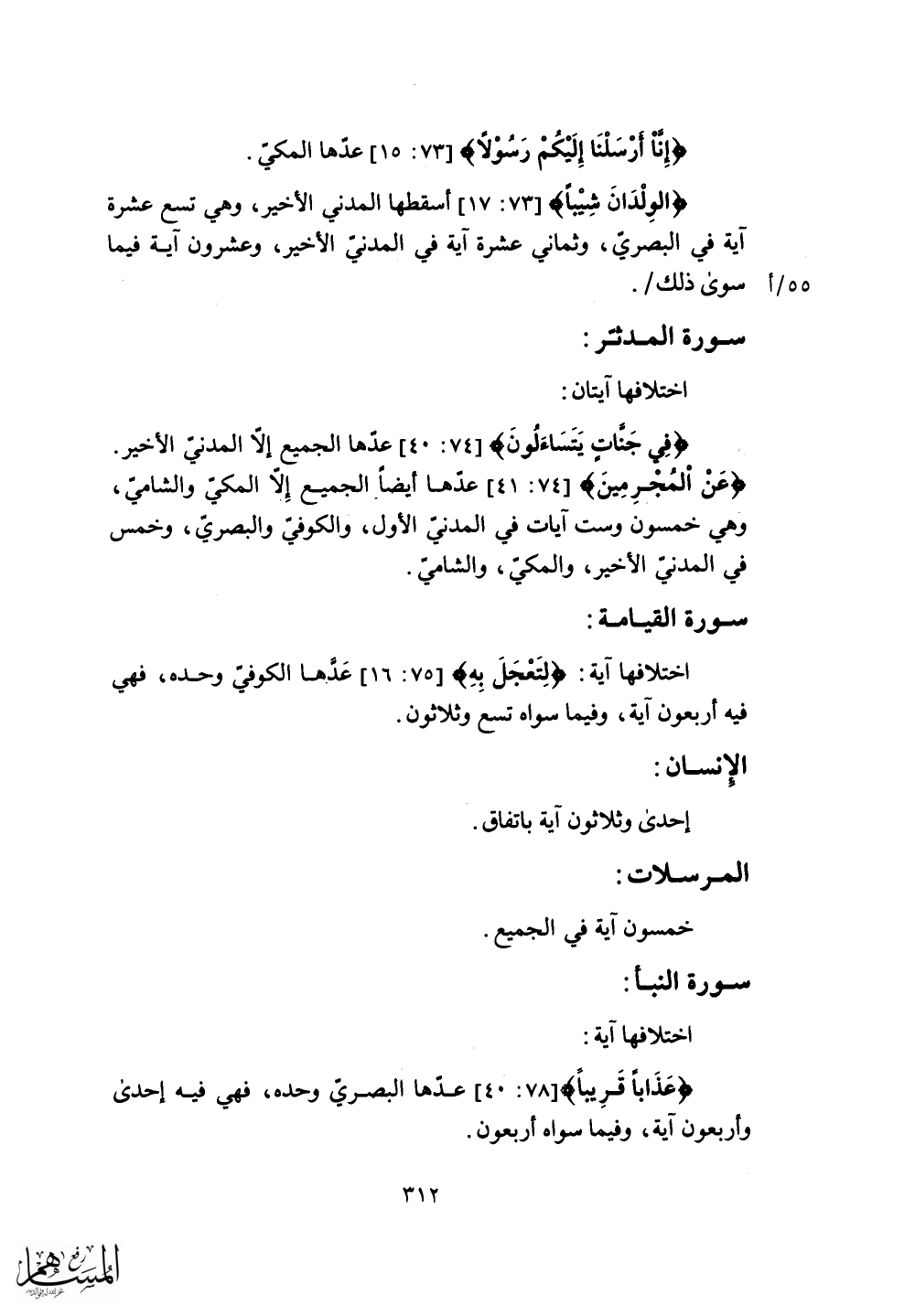 آية في البصري، وثماني عشرة آية في المدنى الأخير، وعشرون آية فيما