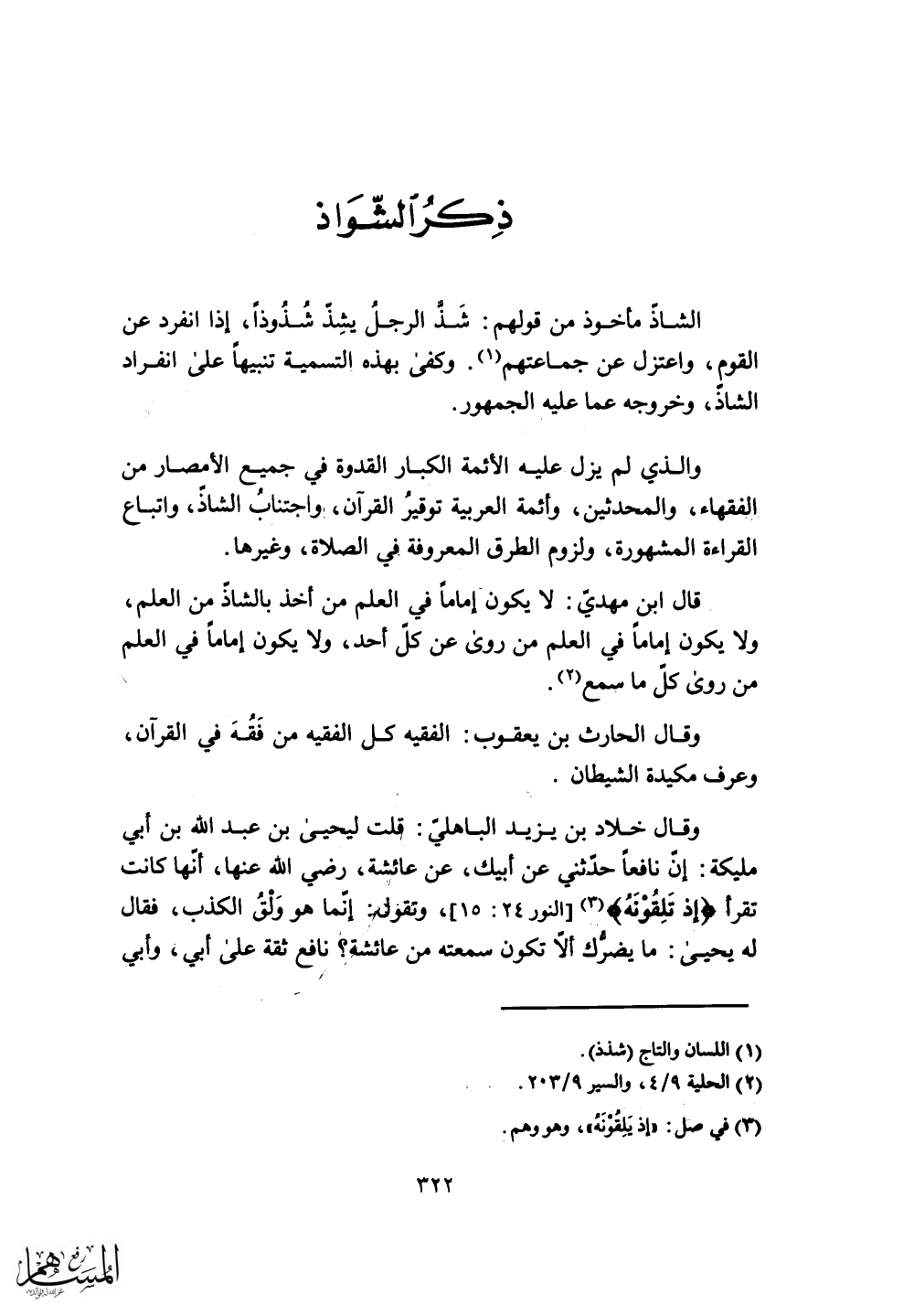 الشاذ مأخوذ من قولهم: شَذ الرجلُ يشِذ شُذُوذاً، إذا انفرد عن