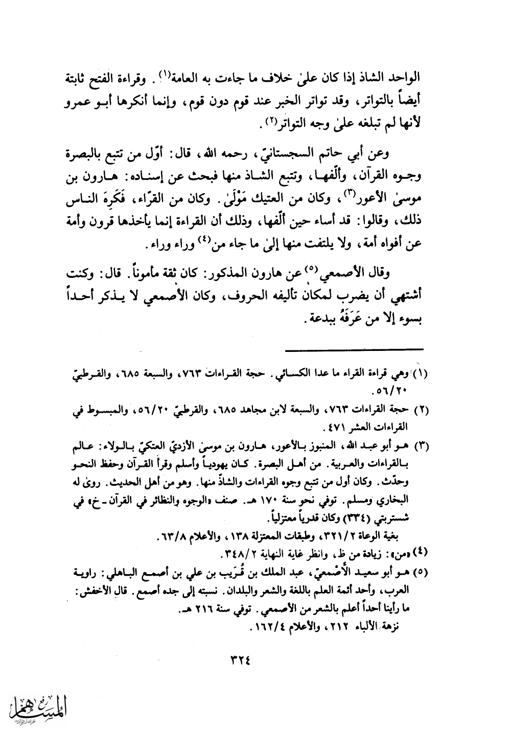 وكان من القراء، فَكَرِهَ الناس ذلك، وقالوا: قد أساء حين ألّفها، وذلك أن القراءة إنما يأخذها قرون وأمة عن أفواه أمة، ولا يلتفت منها إلى ما جاء من وراء وراء.