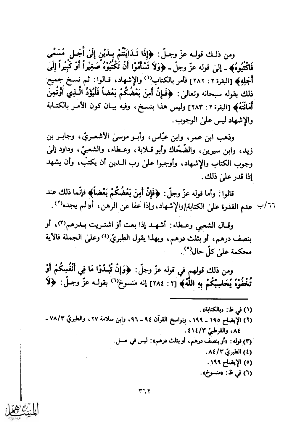 ذلك بقوله سبحانه وتعالى: (فَإِنْ أَمِنَ بَعْضُكُمْ بَعْضًا فَلْيُؤَدِّ الَّذِي اؤْتُمِنَ أَمَانَتَهُ) وليس هذا بنسخ، وفيه بيان كون الأمر بالكتابة