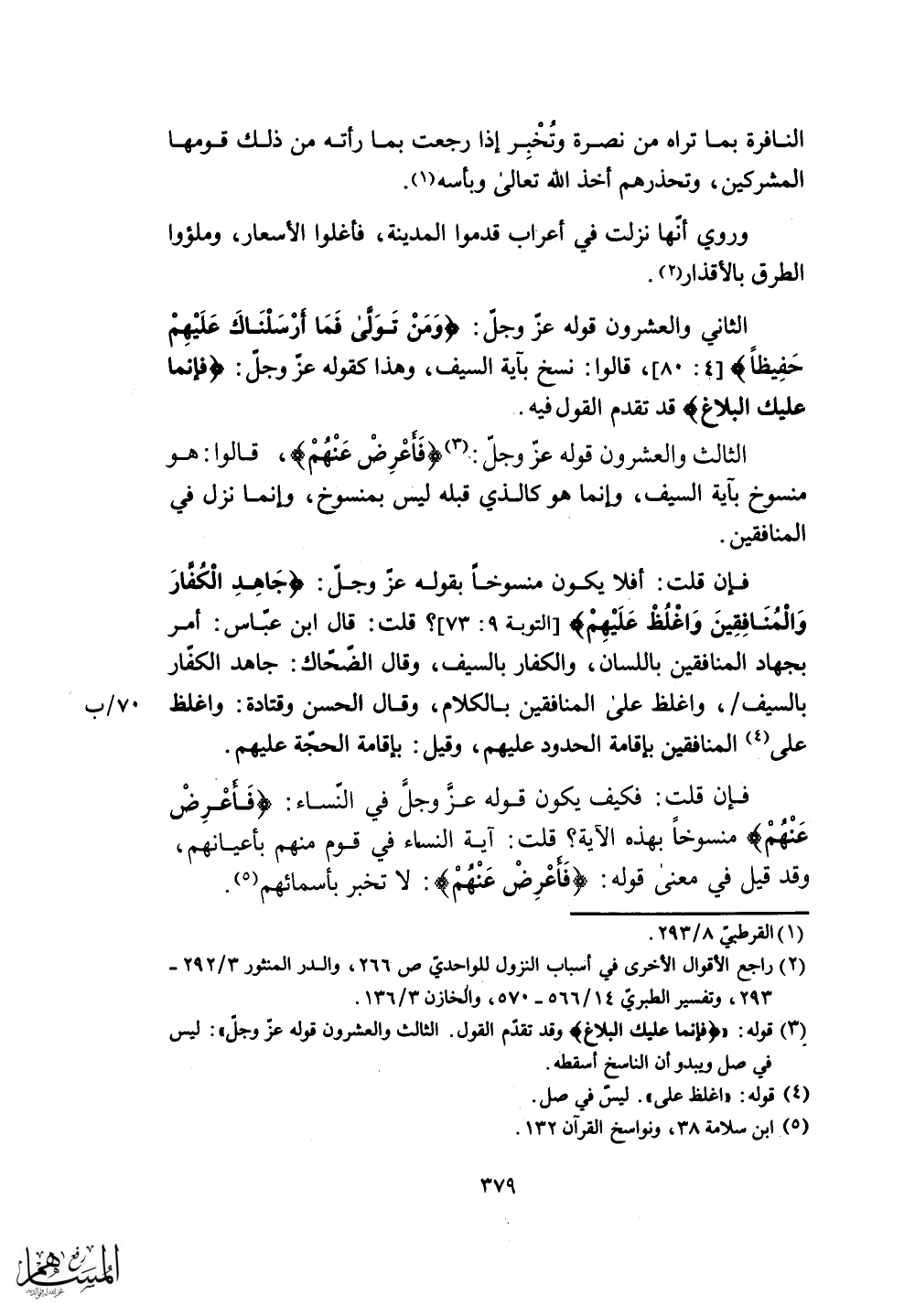 قالوا: هو منسوخ بآية السيف، وإنما هو كالذي قبله ليس بمنسوخ، وإنما نزل في المنافقين.