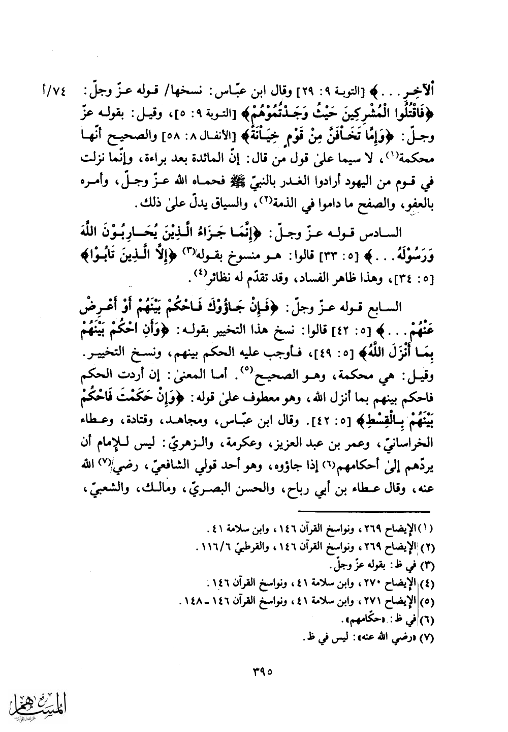 السابع قوله عز وجل: (فَإِنْ جَاءُوكَ فَاحْكُمْ بَيْنَهُمْ أَوْ أَعْرِضْ عَنْهُمْ وَإِنْ تُعْرِضْ عَنْهُمْ)