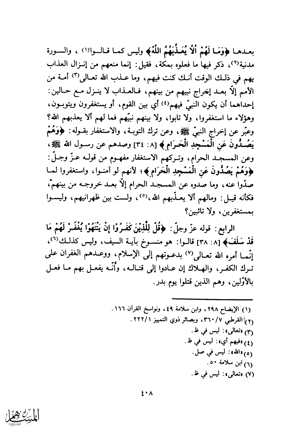 وعن المسجد الحرام، وتركهم الاستغفار مفهوم من قوله عز وجل: