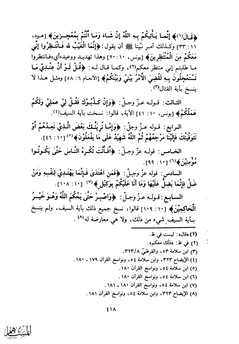 قالوا: نسخ جميع ذلك بآية السيف، ولم ينسخ بآية السيف شيء من ذلك، ولا هي معارضة له.