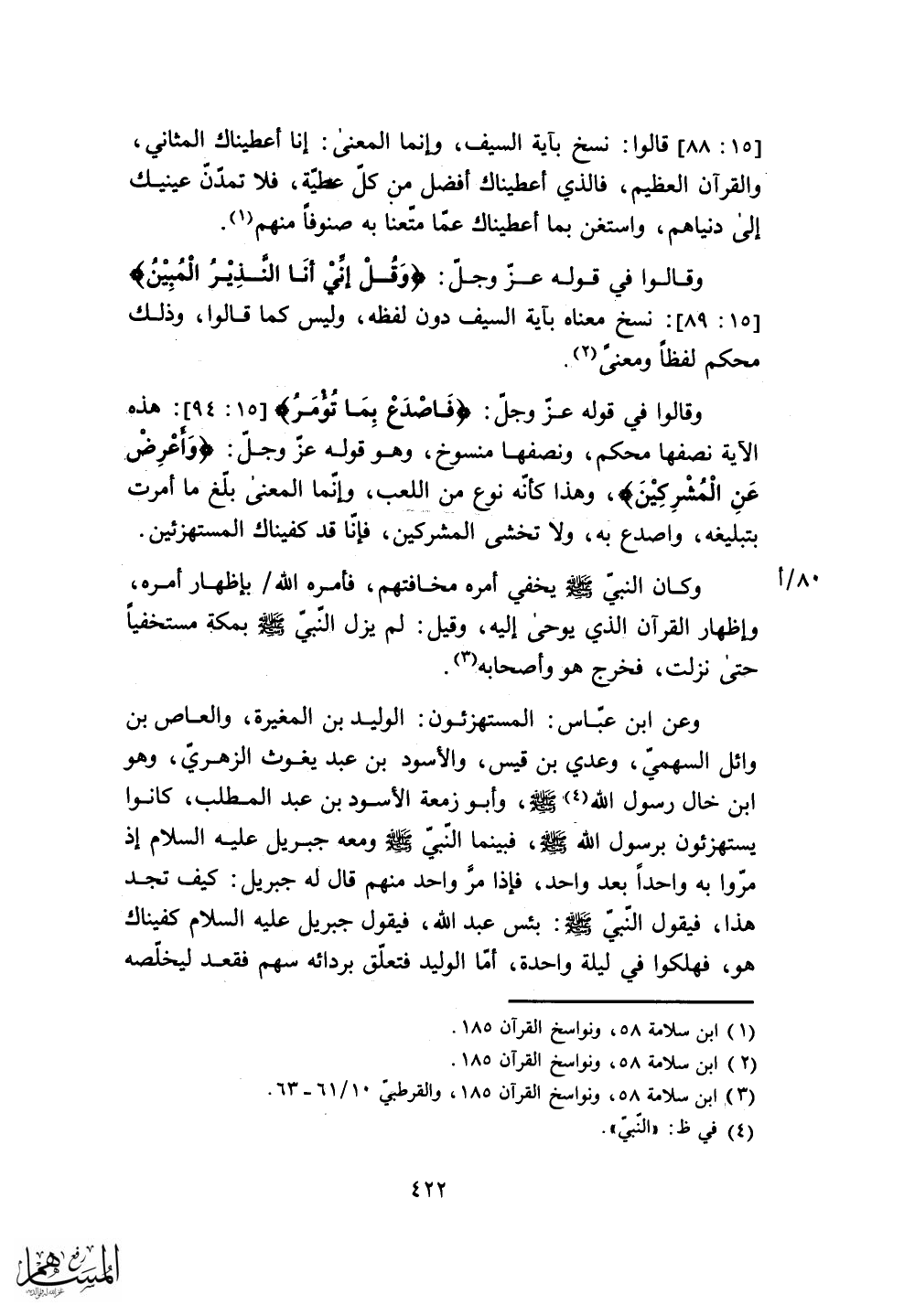وعن ابن عباس: المستهزئون: الوليد بن المغيرة، والعاص بن
