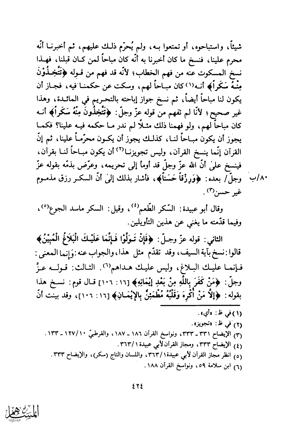فينسخ على أن الله عز وجل قد أومأ إلى تحريمه، وعرض بذمه بقوله عز