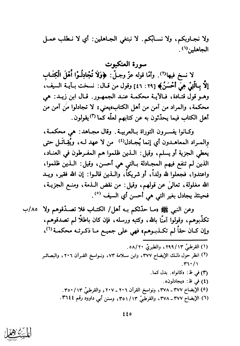 وأمَّا قوله عزَّ وجلَّ: (وَلَا تُجَادِلُوا أَهْلَ الْكِتَابِ إِلَّا بِالَّتِي هِيَ أَحْسَنُ)