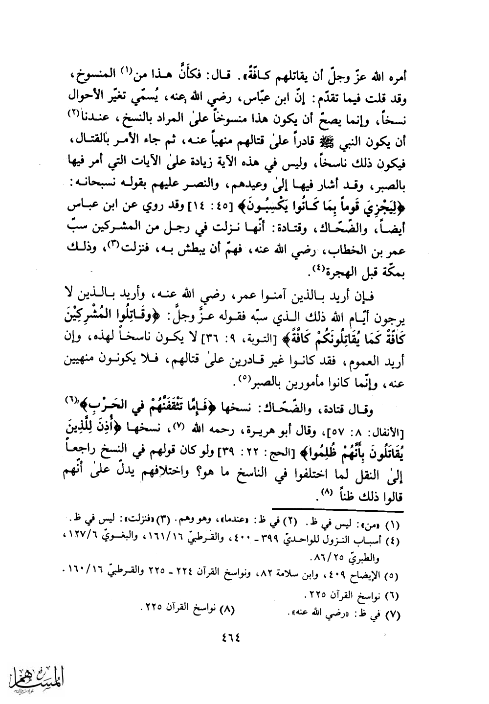 وقال أبو هريرة - رحمه الله - نسخها (أُذِنَ لِلَّذِينَ يُقَاتَلُونَ بِأَنَّهُمْ ظُلِمُوا) .