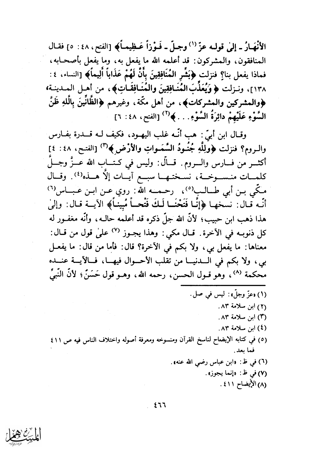 أنه قال: نسخها (إِنَّا فَتَحْنَا لَكَ فَتْحًا مُبِينًا) الآية قال: وإلى