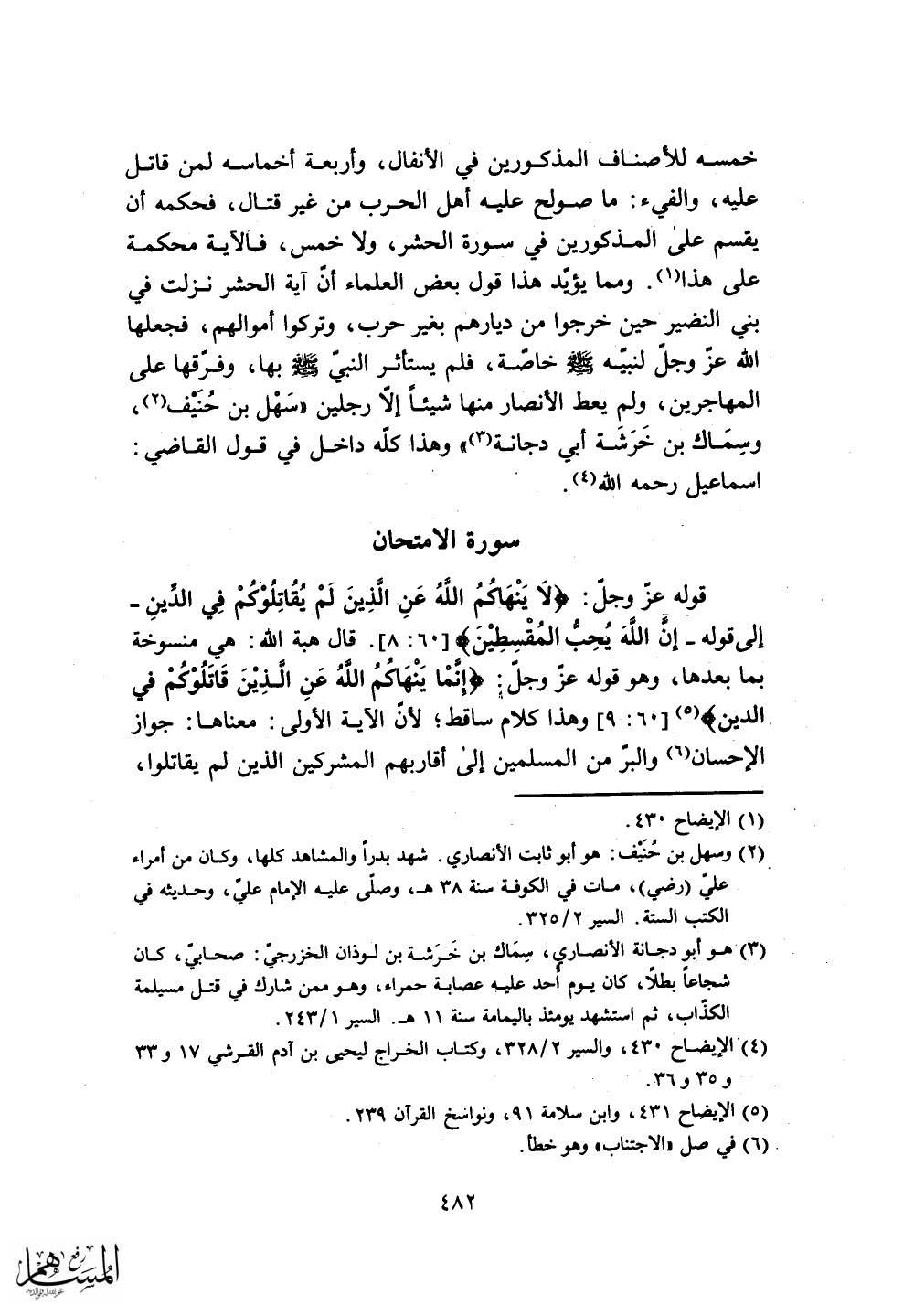 المهاجرين، ولم يعط الأنصار منها شيئاً إلا رجلين "سَهْل بن حُنَيْف.