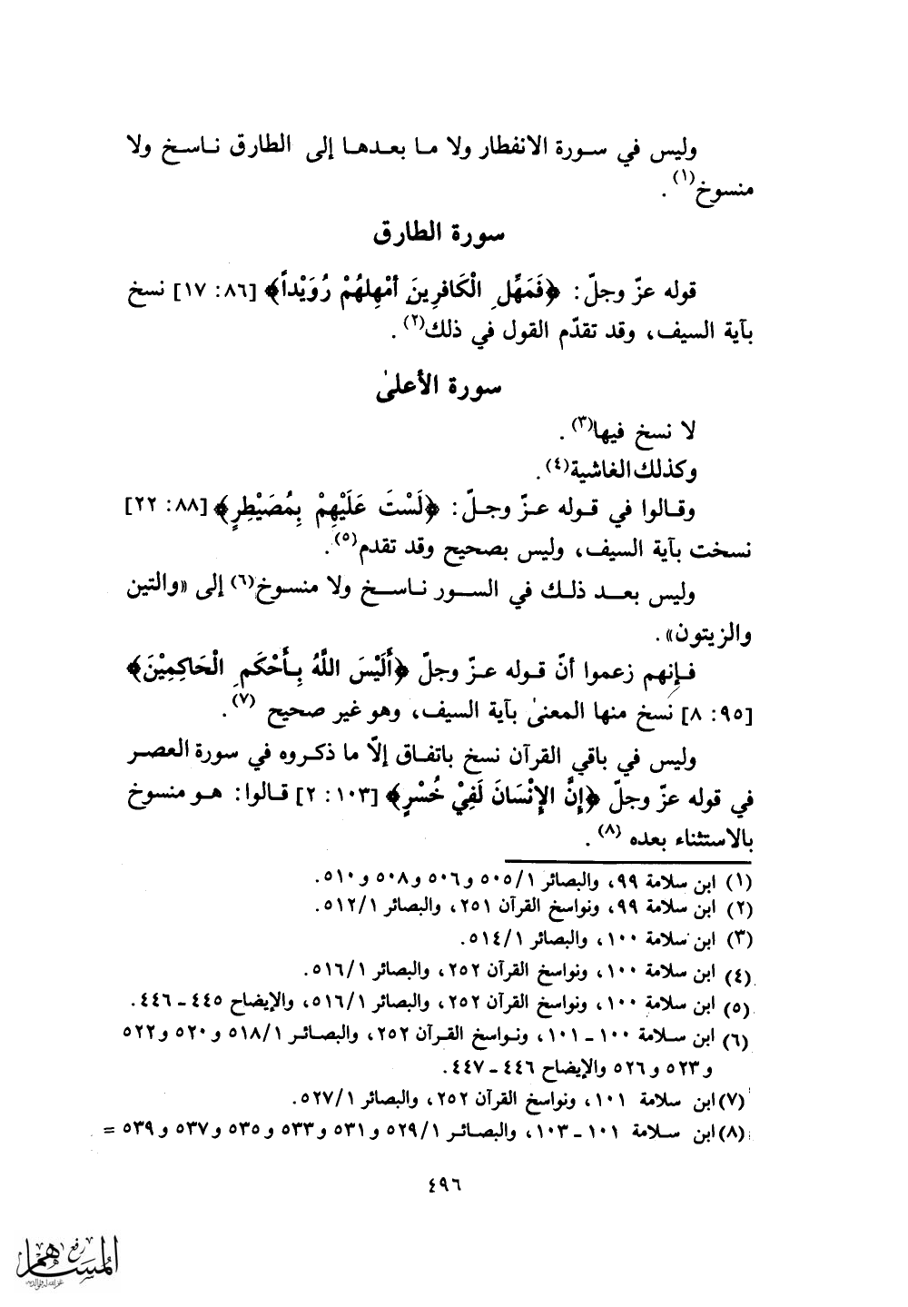 وليس في باقي القرآن نسخ باتفاق إلَّا ما ذكروه في سورة العصر