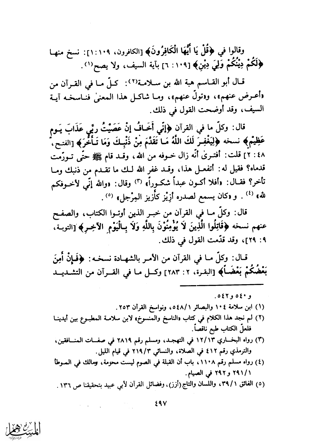 قال أبو القاسم هبة الله بن سلامة: كل ما في القرآن من