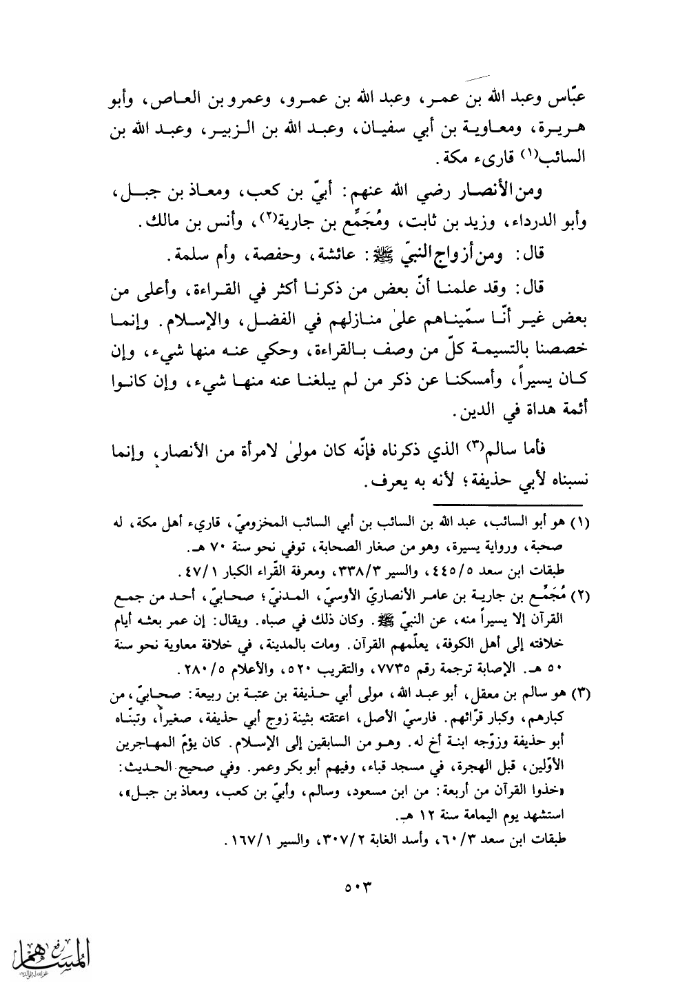ومن الأنصار رضي الله عنهم: أبى بن كعب، ومعاذ بن جبل.