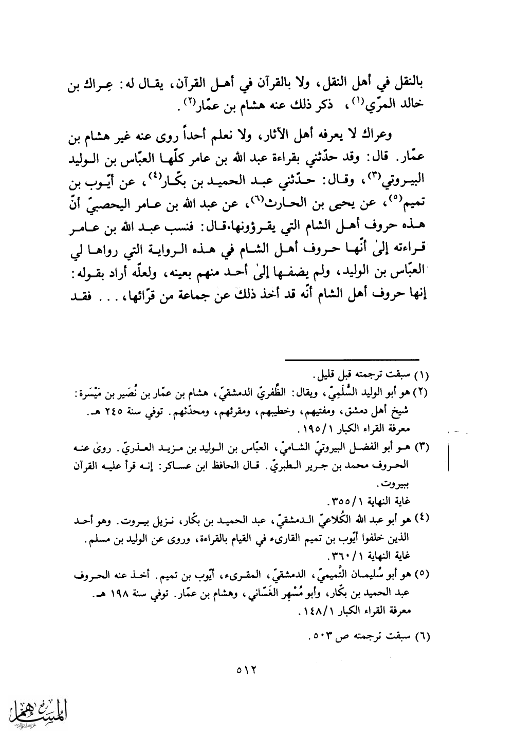 قال: فنسب عبد الله بن عامر قراءته إلى أنها حروف أهل الشام في هذه الرواية التي رواها لي العباس بن الوليد، ولم يضفها إلى أحد منهم بعينه، ولعله أراد بقوله: إنها حروف أهل الشام أنه قد أخذ ذلك عن جماعة من قرائها". . . فقد