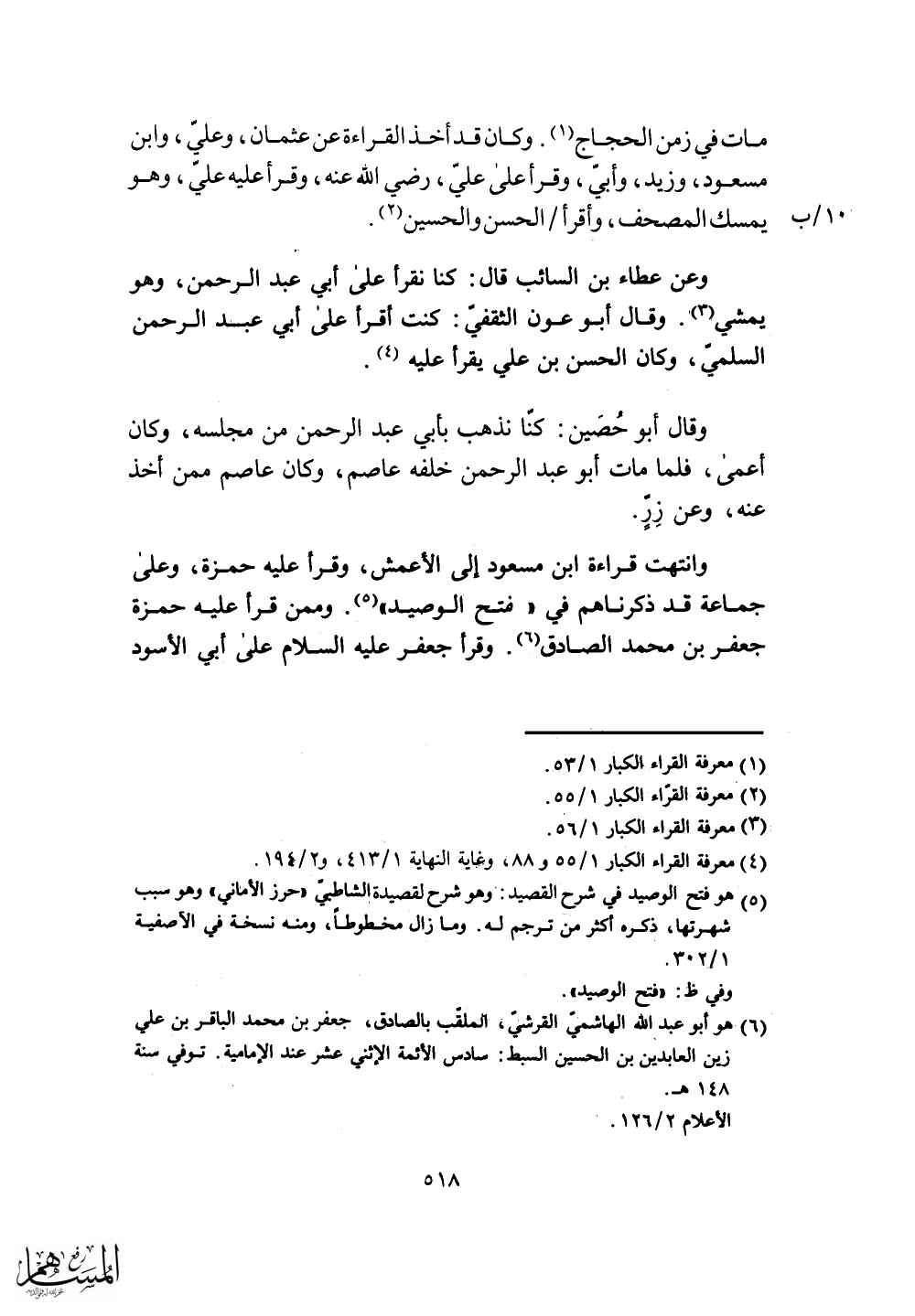 وانتهت قراءة ابن مسعود إلى الأعمش، وقرأ عليه حمزة، وعلى