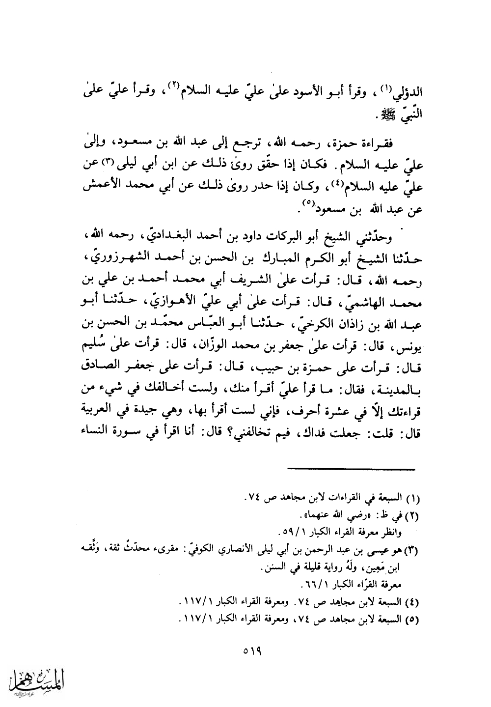 فقراءة حمزة، رحمه الله، ترجع إلى عبد الله بن مسعود، وإلى