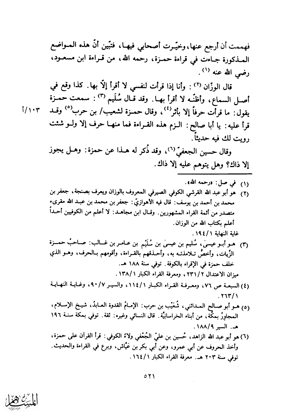 وقال حسين الجعفى، وقد ذُكر له هذا عن حمزة: وهل يجوز إلا ذاك؟