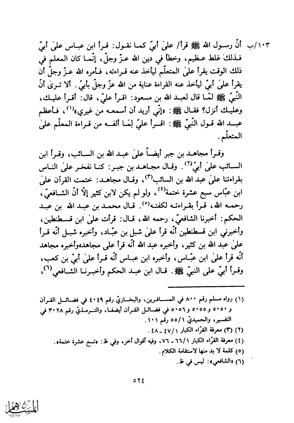 وقرأ مجاهد بن جبر أيضاً على عبد الله بن السائب، وقرأ ابن