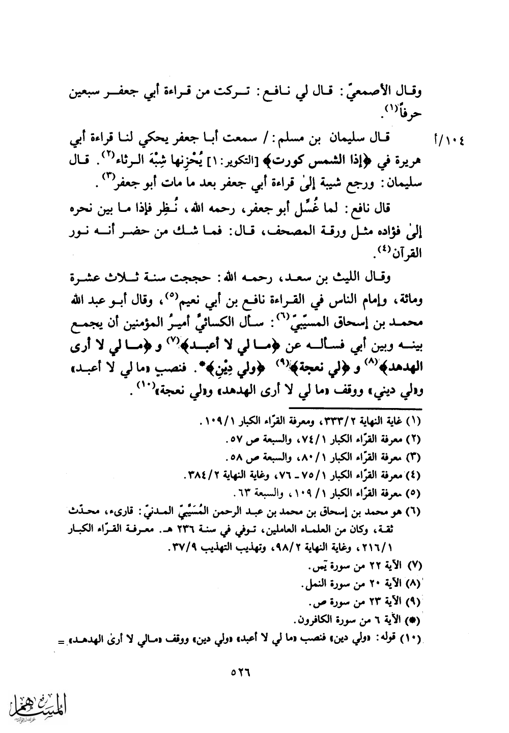 وقال الأصمعي: قال لي نافع: تركت من قراءة أبي جعفر سبعين