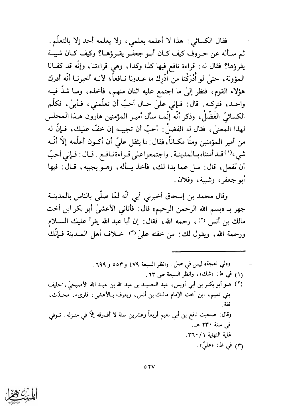 ثم سأله عن حروف كيف كان أبو جعفر يقرؤها؟
