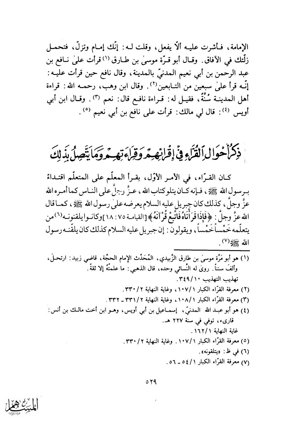 وقال أبو قرّة موسى بن طارق قرأت على نافع بن