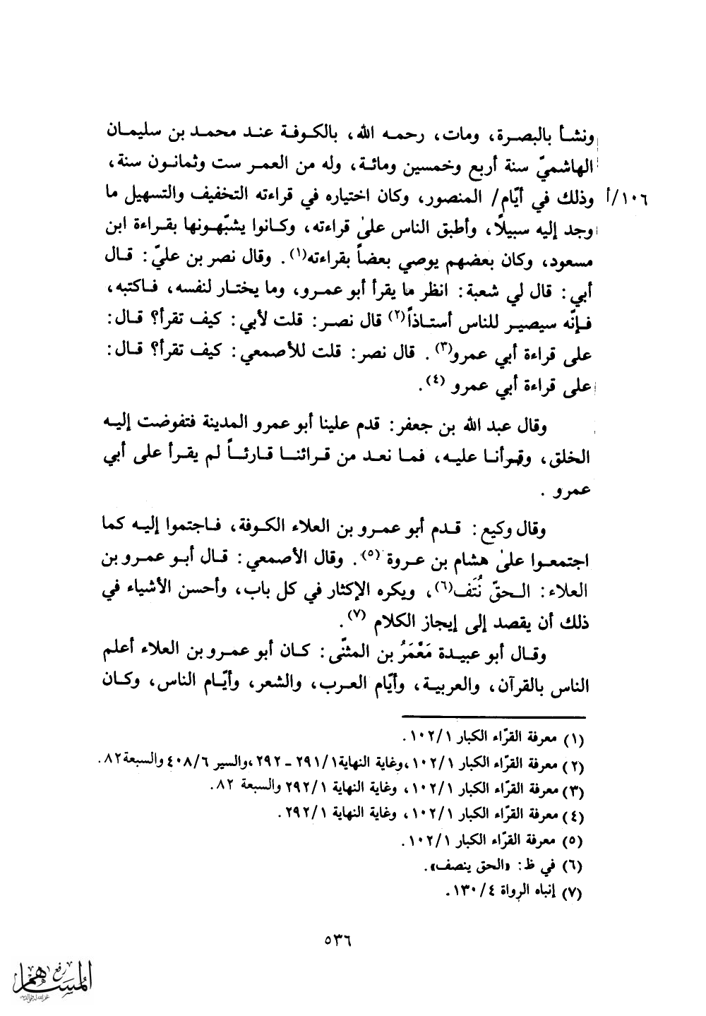 وقال أبو عبيدة مَعمَرُ بن المثنى: كان أبو عمرو بن العلاء أعلم
