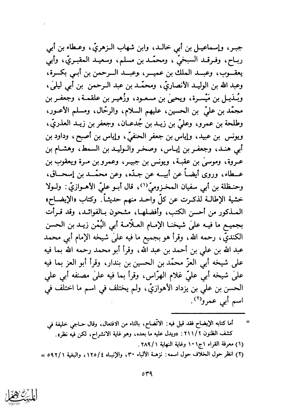 وكتاب (الإيضاح) المذكور من أحسن الكتب، وأفضلها، مشحون بالفوائد، وقد قرأت بجميع ما فيه على شيخنا الإمام العلامة أبي اليُمْن زيد بن الحسن
