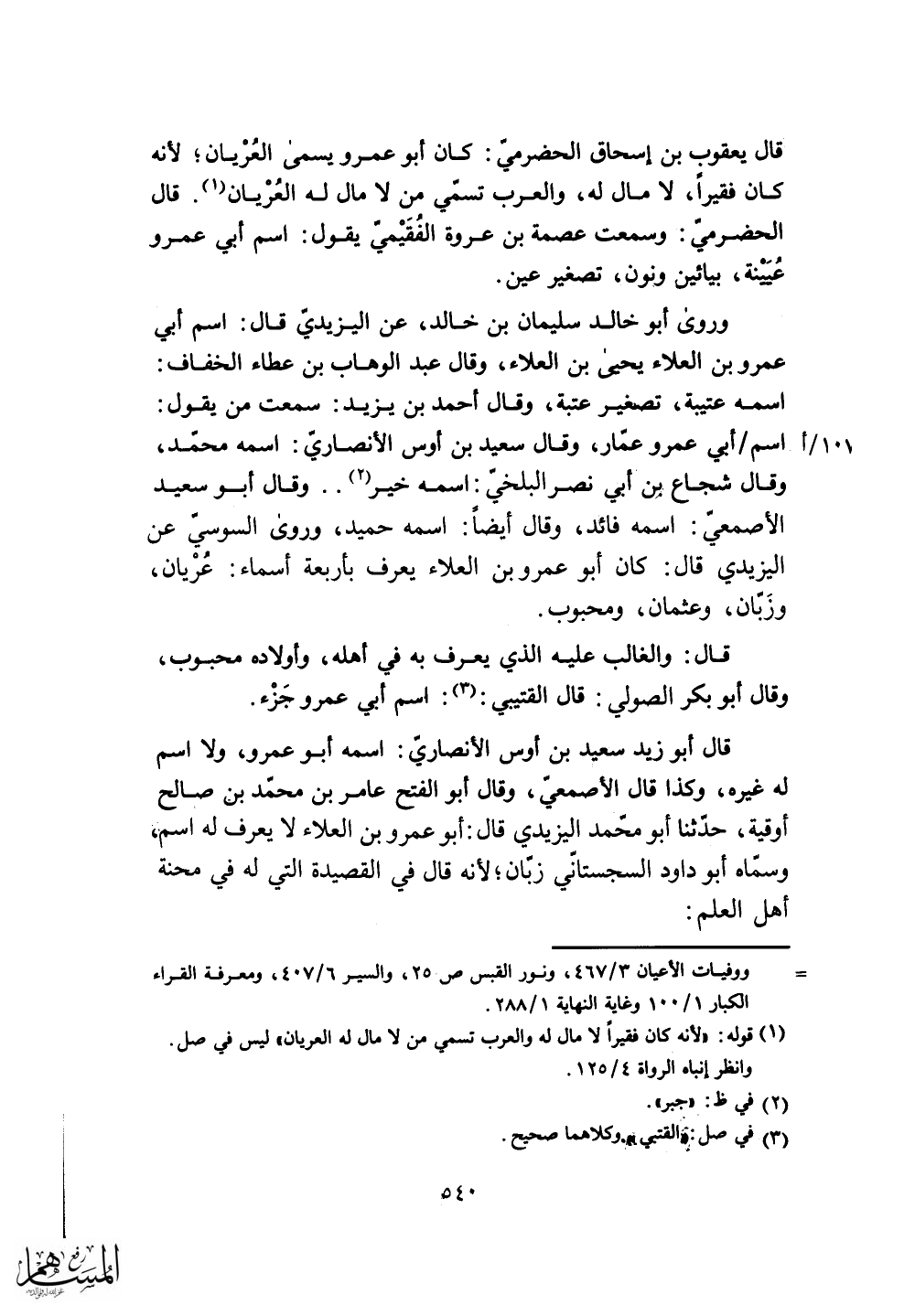 قال يعقوب بن إسحاق الحضري: كان أبو عمرو يسمى العُرْيان؛ لأنه