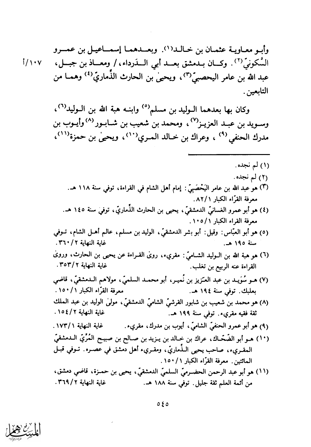 عبد الله بن عامر اليحصبى، ويحيَى بن الحارث الذماري وهما من