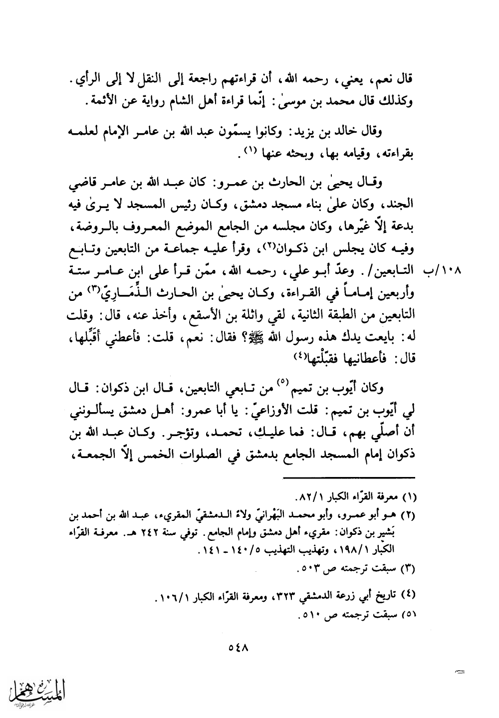وأربعين إماماً في القراءة، وكان يحيَى بن الحارث الذمَارِي من