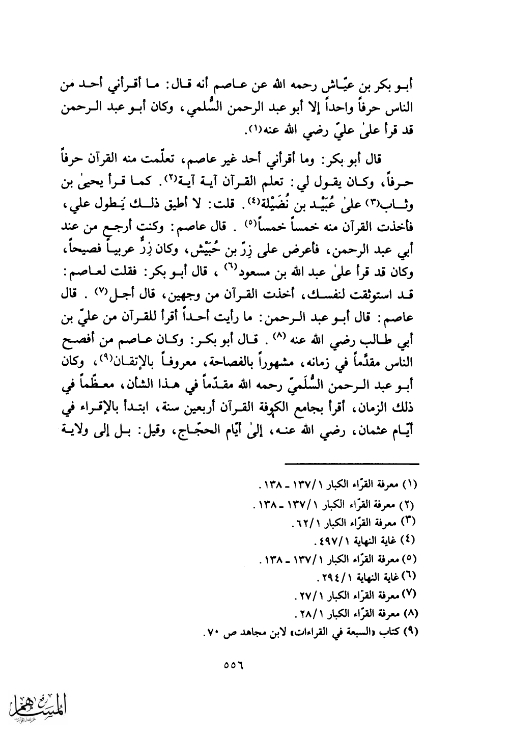 الناس حرفاً واحداً إلا أبو عبد الرحمن السُّلمي، وكان أبو عبد الرحمن