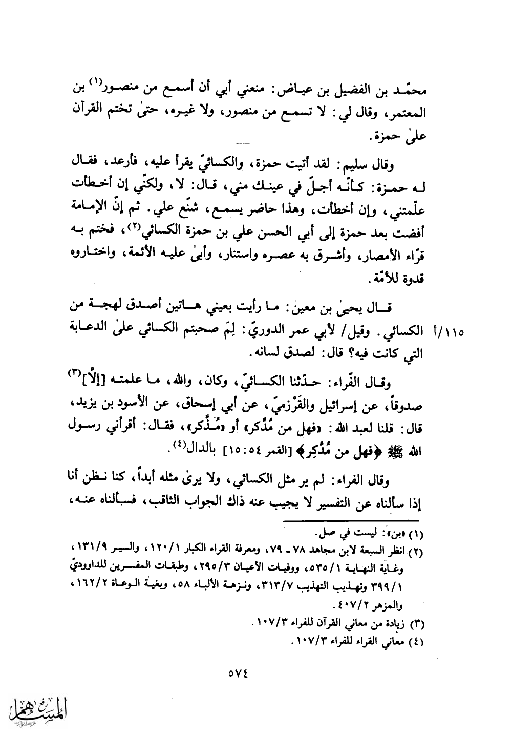 وقال الفراء: حدثنا الكسائى، وكان، والله، ما علمته إلَّا، صدوقاً، عن إسرائيل والقَرْزمي، عن أبي إسحاق، عن الأسود بن يزيد.