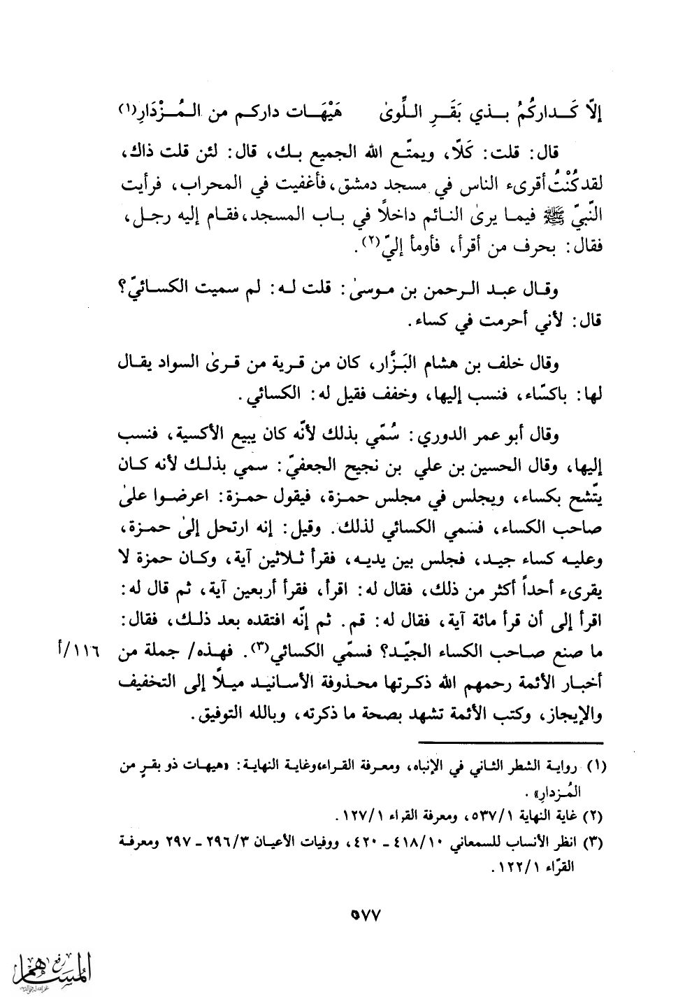 وقيل: إنه ارتحل إلى حمزة، وعليه كساء جيد، فجلس بين يديه، فقرأ ثلاثين آية، وكان حمزة لا يقرئ أحداً أكثر من ذلك، فقال له: اقرأ، فقرأ أربعين آية، ثم قال له: اقرأ إلى أن قرأ مائة آية، فقال له: قم.